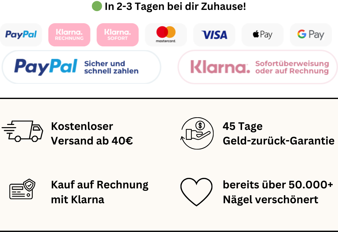 Die UV-Nagelfolien von Nailuxe sind die perfekte Wahl für alle, die eine schnelle, einfache und kostengünstige Lösung für professionell aussehende Nägel suchen – und das alles bequem von zu Hause aus. Steige um auf die moderne Art der Nagelpflege und erlebe, wie einfach es sein kann, Deine Nägel jederzeit perfekt zu stylen!